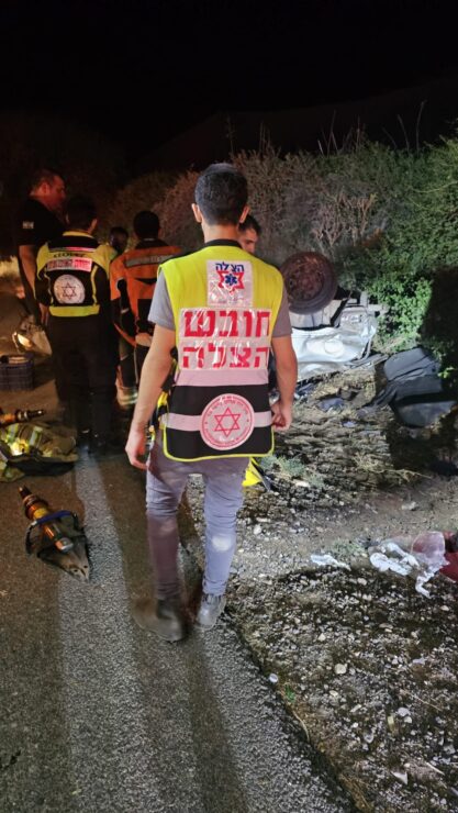 החובשים הבכירים מיחידת האופנועים של מד"א, אביעד עמר ומורן אבו שקארה, סיפרו: "ראינו רכב הפוך, בסמוך שכבו 5 פצועים שחולצו מהרכב, אחד מהם גבר כבן 25 היה מחוסר הכרה ללא נשימה וללא דופק, הוא סבל מחבלה רב מערכתית, לאחר נסיונות החייאה נאלצנו לקבוע את מותו, ארבעה פצועים נוספים היו בהכרה וסבלו מחבלות בגב בבטן ובגפיים, הענקנו להם טיפול רפואי מציל חיים שכלל הרדמה והנשמה של אחד הפצועים, ופינינו אותם לבית החולים, כשמצבם של 2 קשה ו- 2 בינוני."