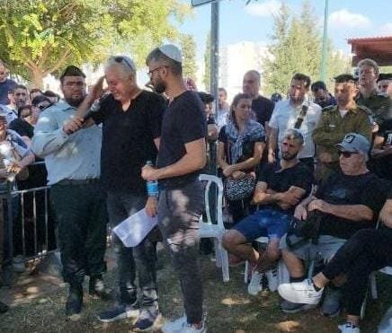חבריו של מתן שניצלו בזכות גבורתו בהספדים, לצד ראש מועצת שומרון שמספיד. קרדיט: מועצה אזורית שומרון.