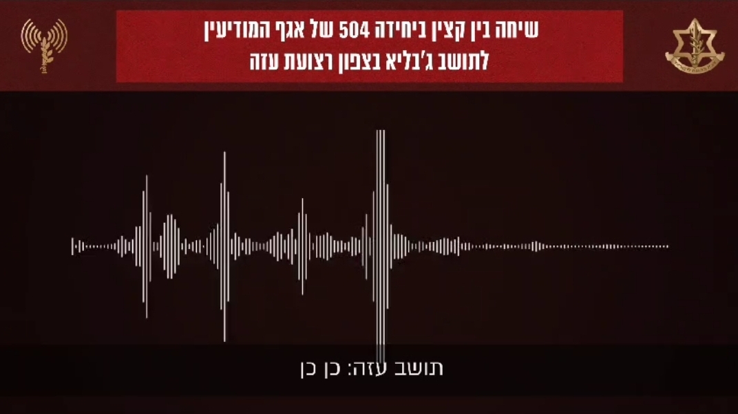 תיעוד של שיחה בין קצין מודיעין של יחידה 504 לבין תושב ג׳באליה. בשיחה התושב מעיד שחמאס החרימו מהאנשים במחסה בו הוא נמצא את הציוד האישי ואת מפתחות הרכב.