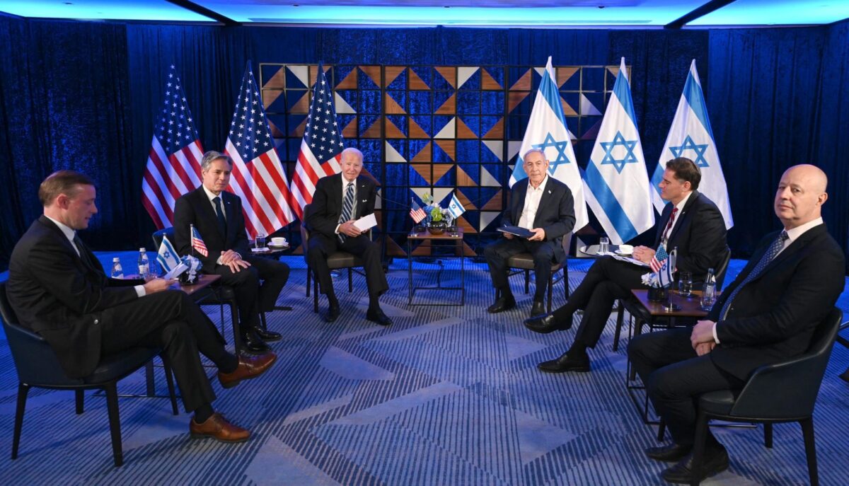בפגישה משתתפים השר לעניינים אסטרטגיים רון דרמר, ר' המל"ל צחי הנגבי, מזכיר המדינה של ארה"ב אנתוני בלינקן והיועץ לביטחון לאומי של ארה"ב ג'ייק סאליבן.
