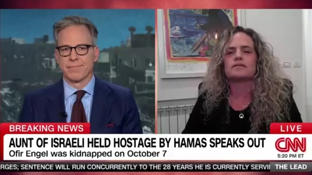 ג'ייק טאפר, המגיש המרכזי של תכנית החדשות של CNN, נחנק מבכי והתקשה להמשיך בשידור אחרי שידור ריאיון לרשת עם יעל אנגל ליצ׳י, שאחיינה אופיר בן ה-17 נחטף לרצועת עזה.