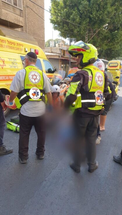 מאיר גרוסמן וישראל וייס מיחידת האופנועים של מד"א הצלה פתח תקווה הוסיפו: הולכת הרגל שכבה באמצע הכביש עם חבלת ראש מדממת, הענקנו לה סיוע וטיפול ראשוני שכלל קיבועים וחבישות, והיא פונתה במהירות בניידת טיפול נמרץ של מד"א לבית החולים.