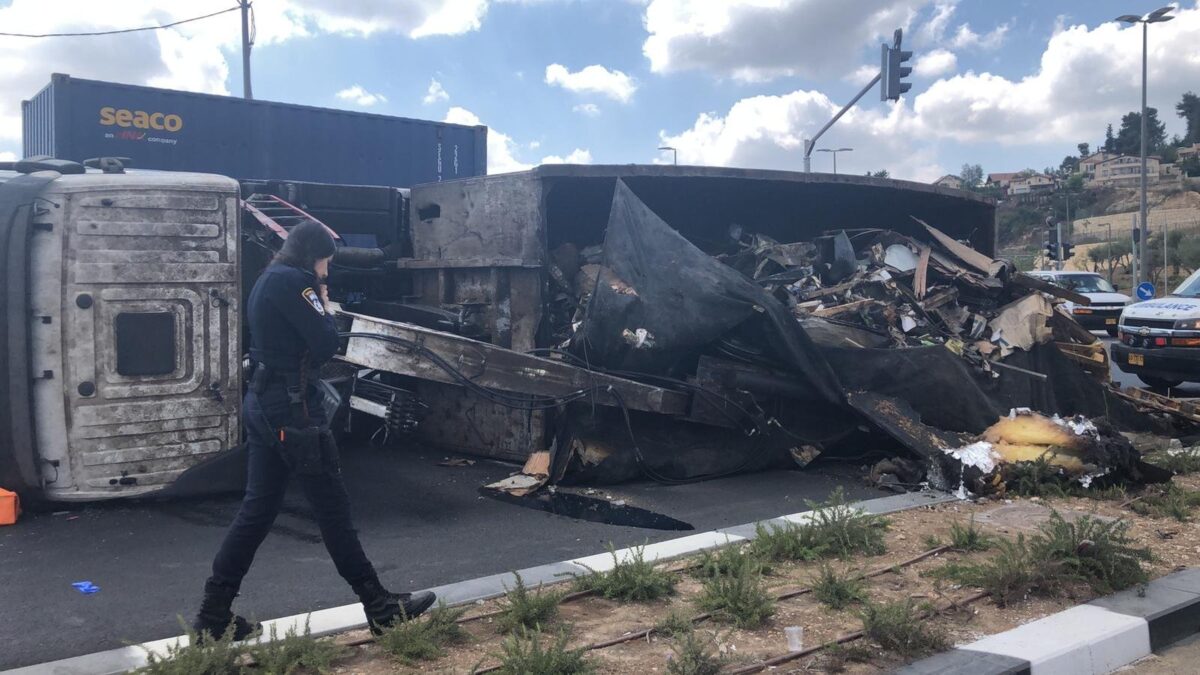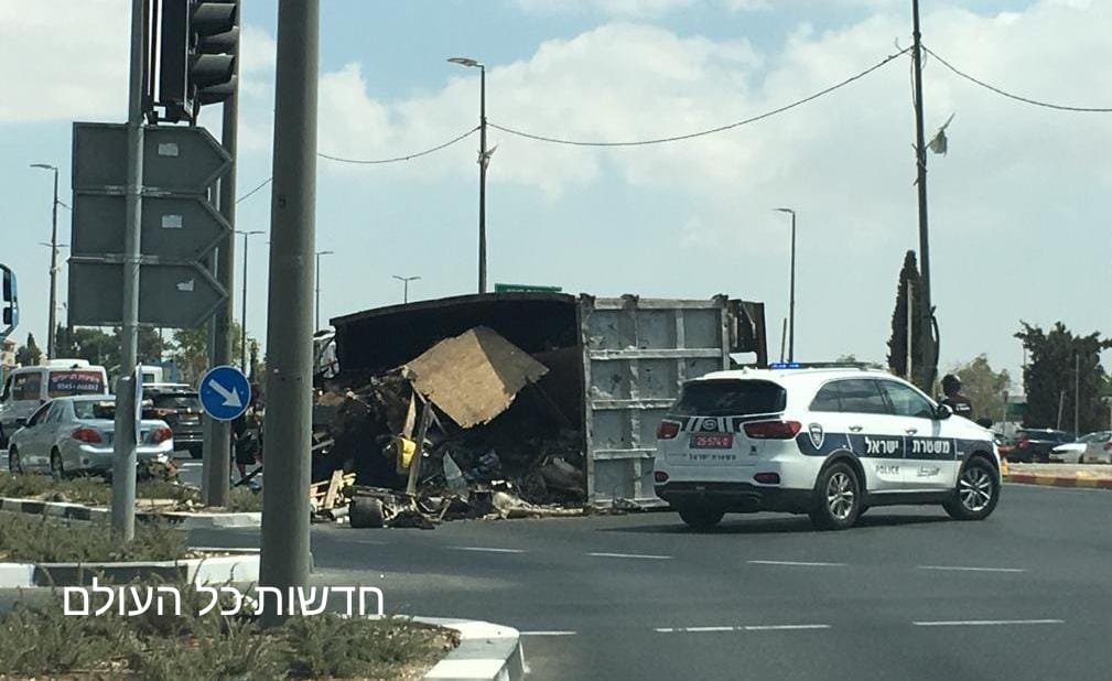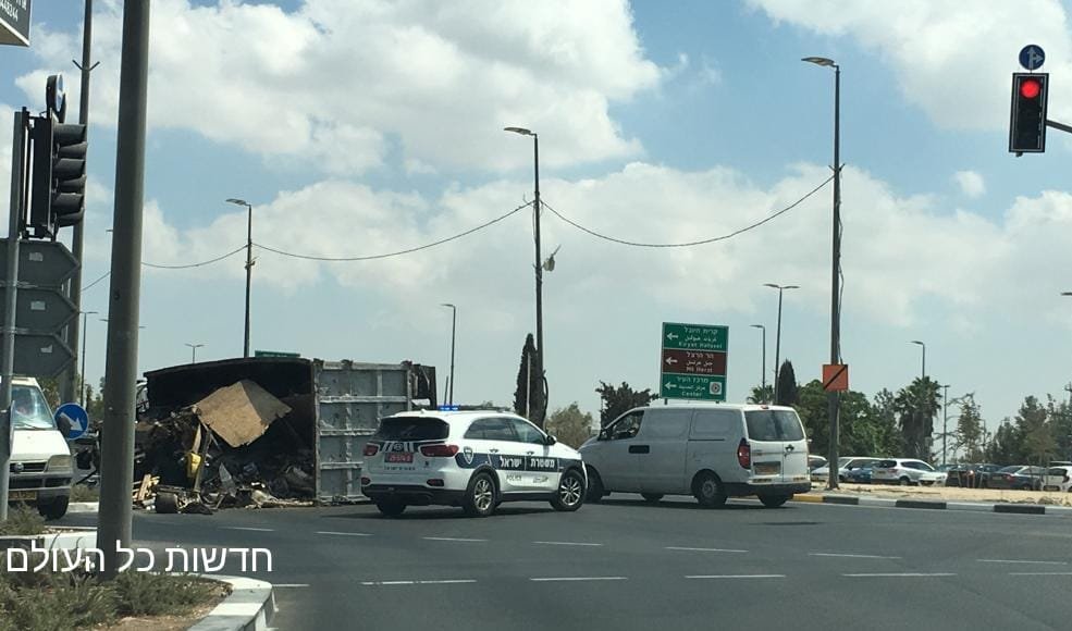 לפני זמן קצר אירעה תאונת דרכים בצומת אורה – עין כרם, במהלכה משאית התהפכה על צידה.