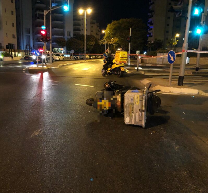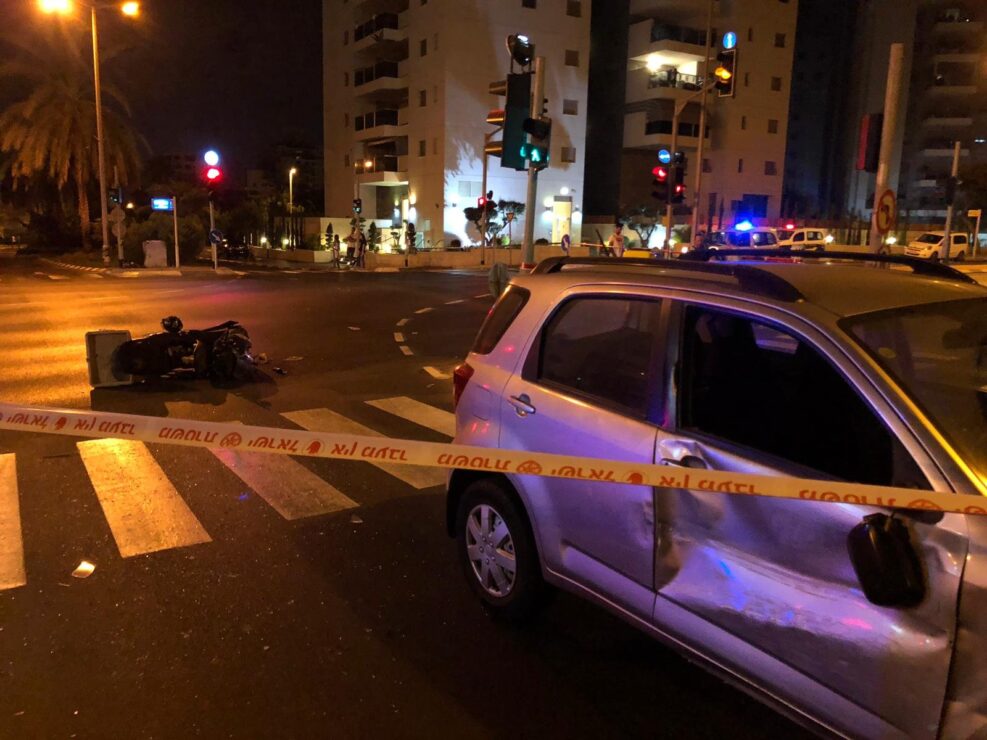 תאונה עם מעורבות רכב פרטי ואופנוע אירעה לפני זמן קצר ברחוב מנחם בגין בחולון.