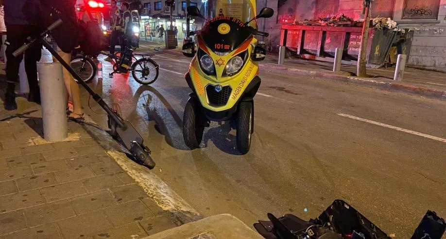 בשעה 05:11 התקבל דיווח על אשה שנפלה מקורקינט חשמלי ברחוב נחלת בנימין בתל אביב.
