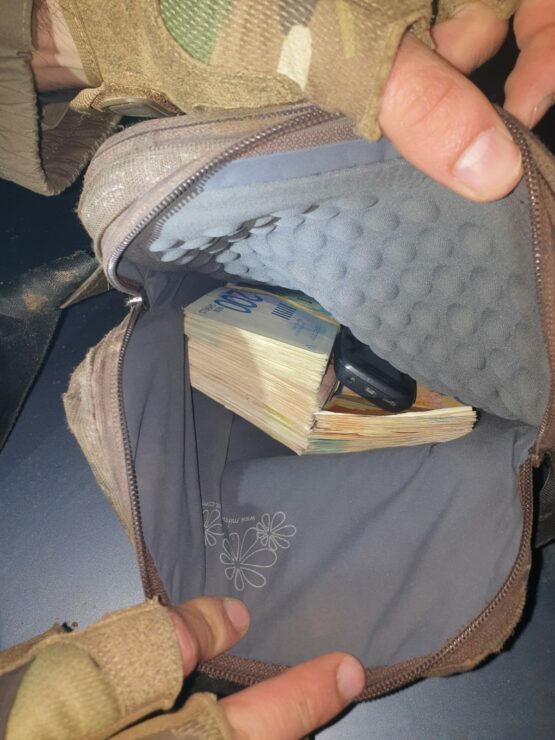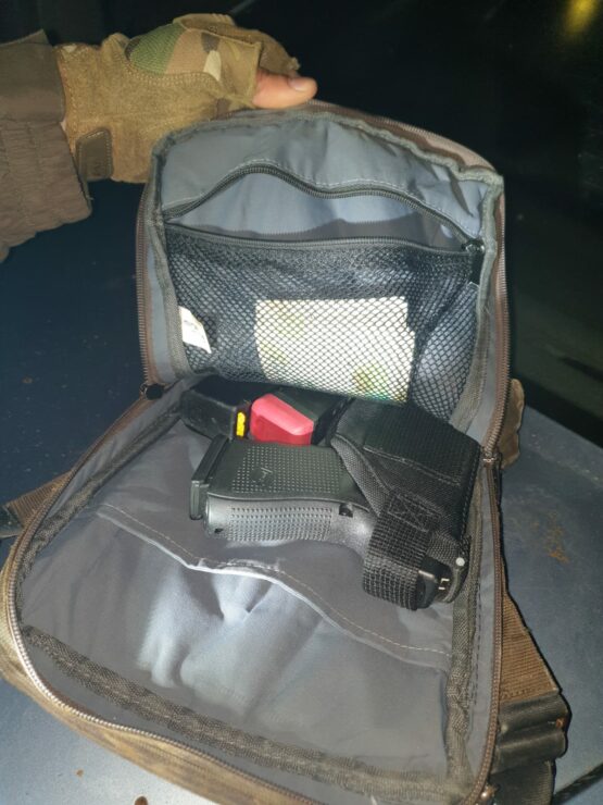 במהלך ניסיון ההימלטות, השליך החשוד תיק שנתפס ע"י השוטרים, בו אותרו אקדח מסוג 'גלוק', תחמושת ואלפי שקלים במזומן.