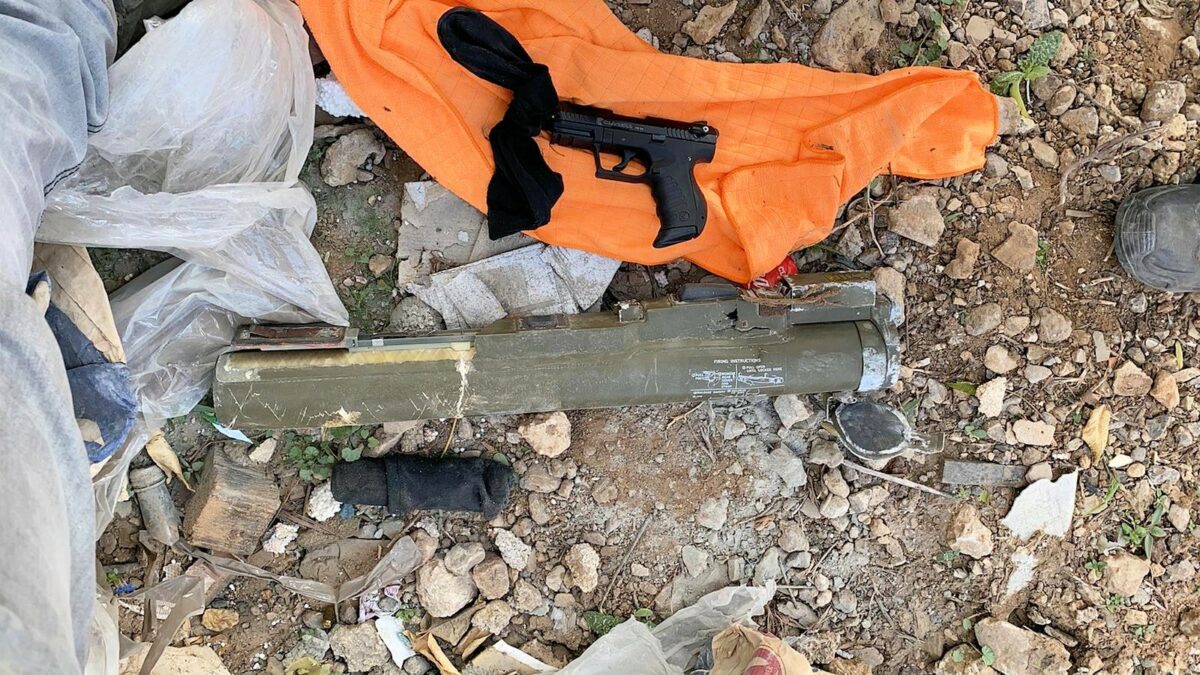 בלשי המשטרה בסיוע כוחות מיוחדים של המשטרה ומשמר הגבול, מצאו בחצר של המתחם רקטת כתף לאו, רימון הלם ואקדח כשהם מוסתרים.