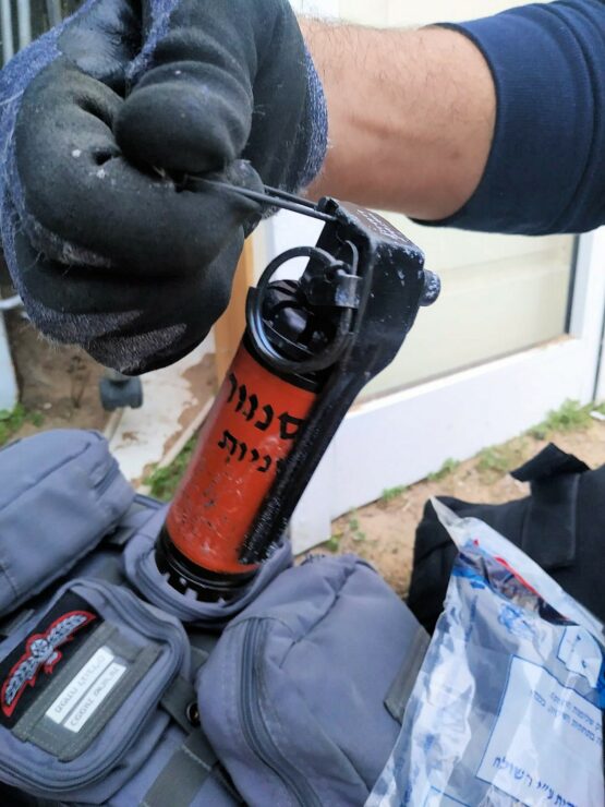 חבלני המשטרה פינו מהמקום את אמצעי הלחימה ולקחו אותם לבדיקה.
