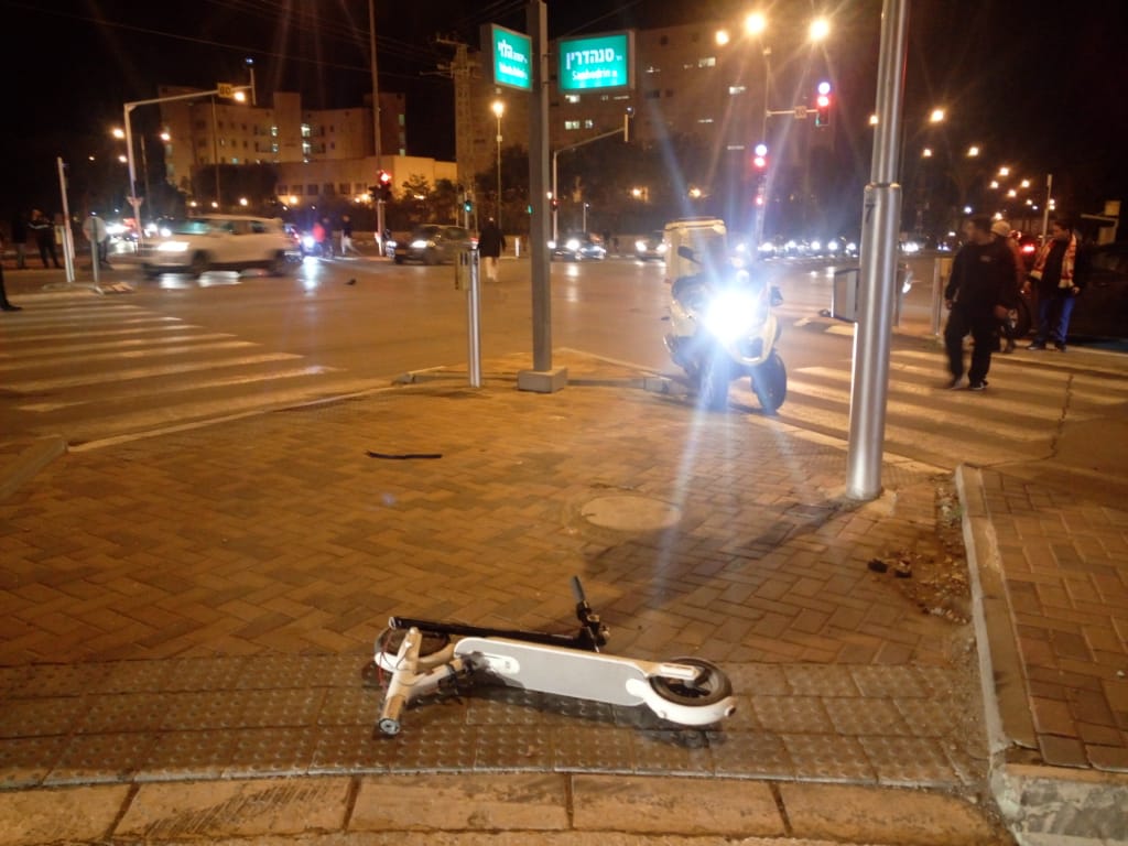 בשעה 21:51 התקבל דיווח על רוכבת קורקינט חשמלי שנפגעה מרכב ברחוב סנהדרין בבאר שבע.