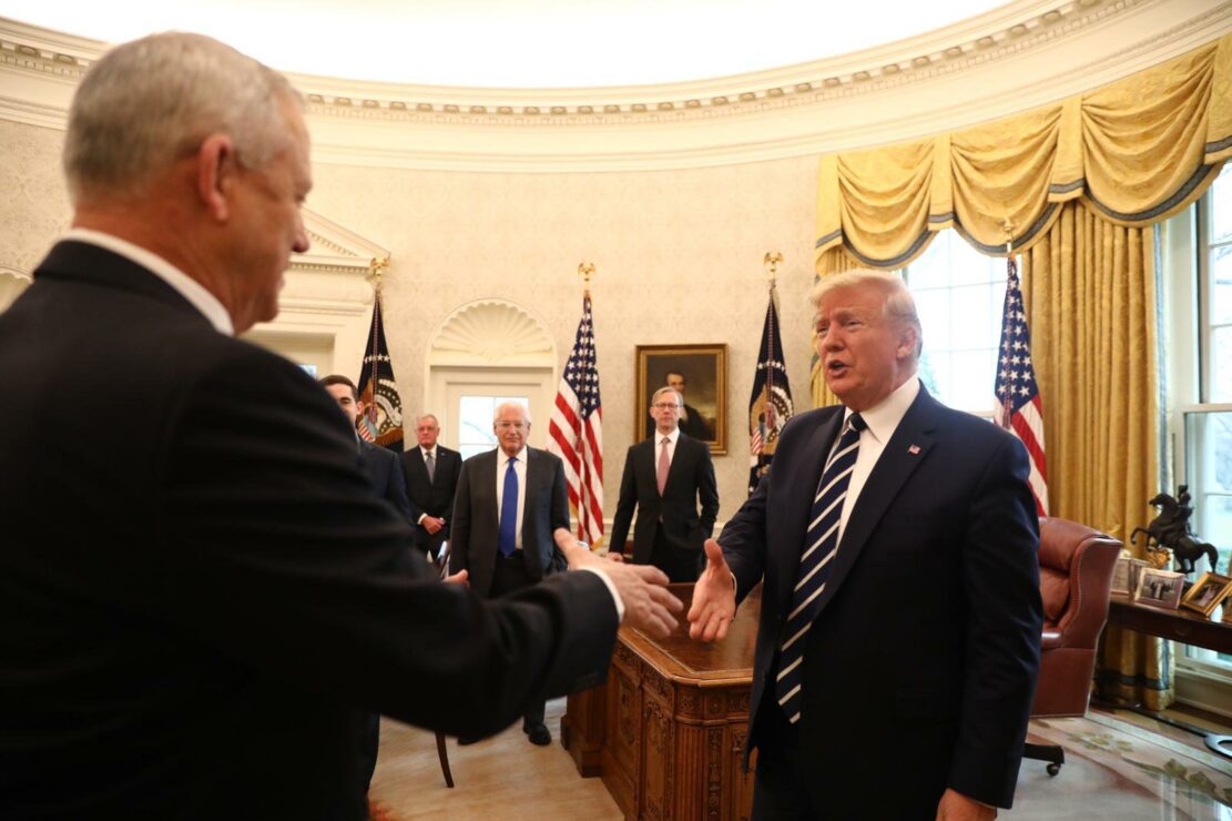 לאחר שעדכן את נתניהו בפרטי עסקת המאה: נשיא ארצות הברית טראמפ נפגש עם יו"ר כחול לבן בני גנץ למשך חמישים דקות.