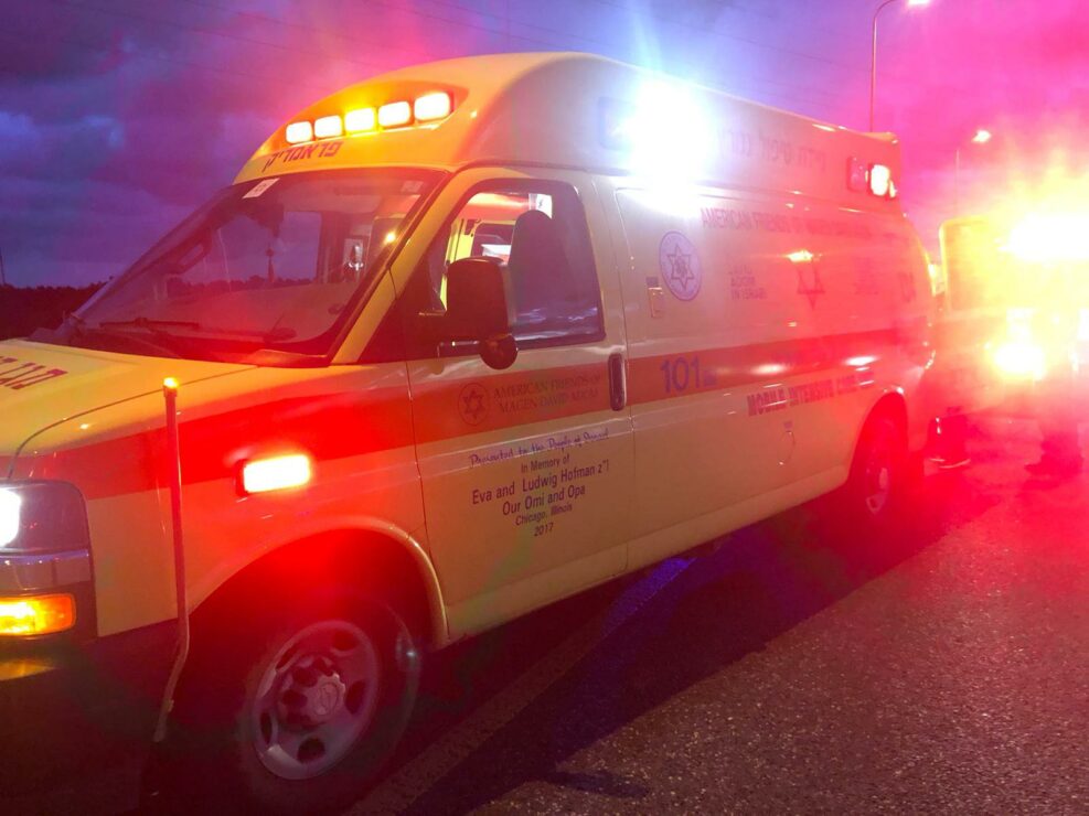 חובשים ופראמדיקים של מד"א העניקו טיפול רפואי ופינו לבי"ח שיבא בתל השומר, גבר כבן 40 במצב קשה, בהכרה, עם חבלת ראש.