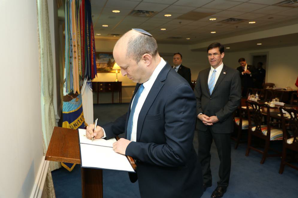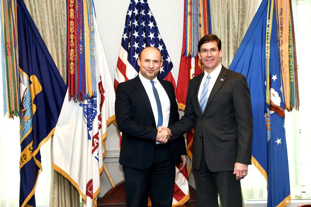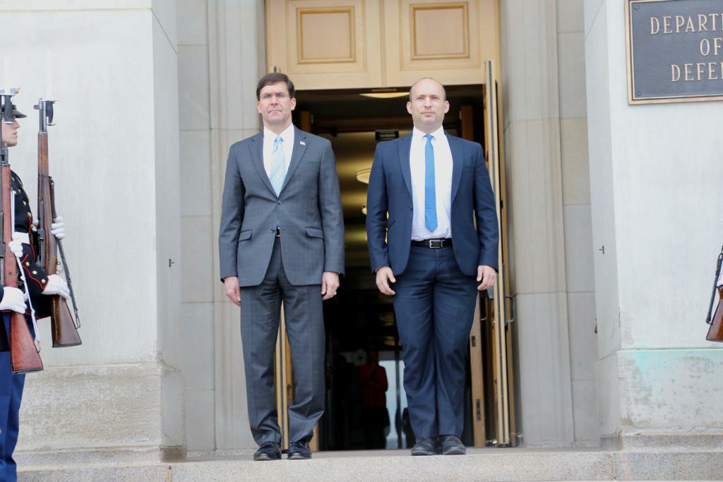 שר הביטחון, נפתלי בנט, נפגש עם מזכיר ההגנה האמריקאי, ד״ר מארק אספר, לפגישה ראשונה מאז נכנסו השניים לתפקידם.