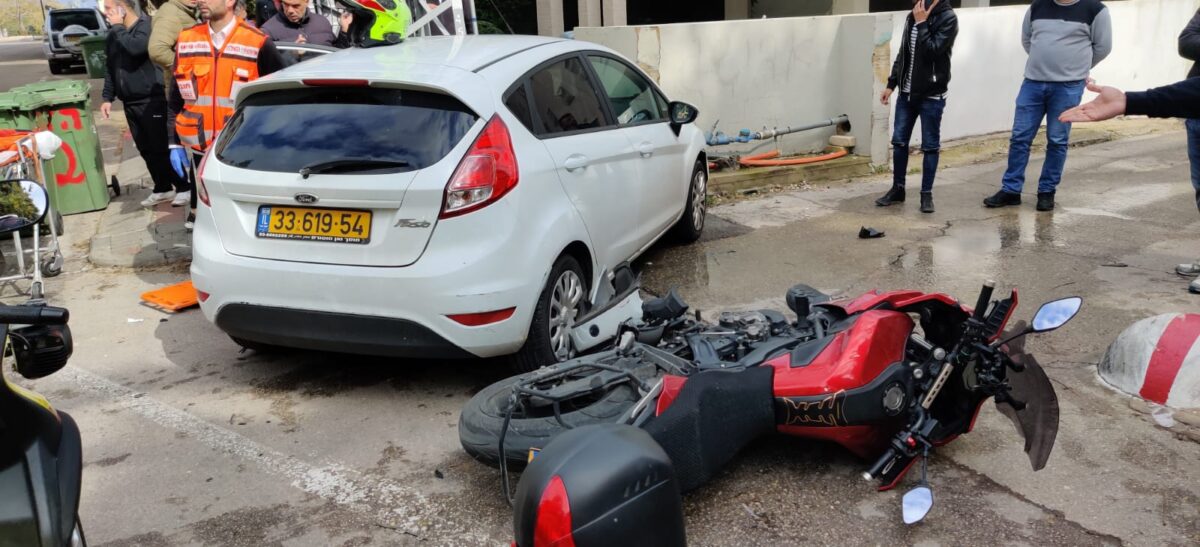לפני זמן קצר התקבל דיווח על רוכב אופנוע שנפגע מרכב ברחוב הדר בהרצליה.