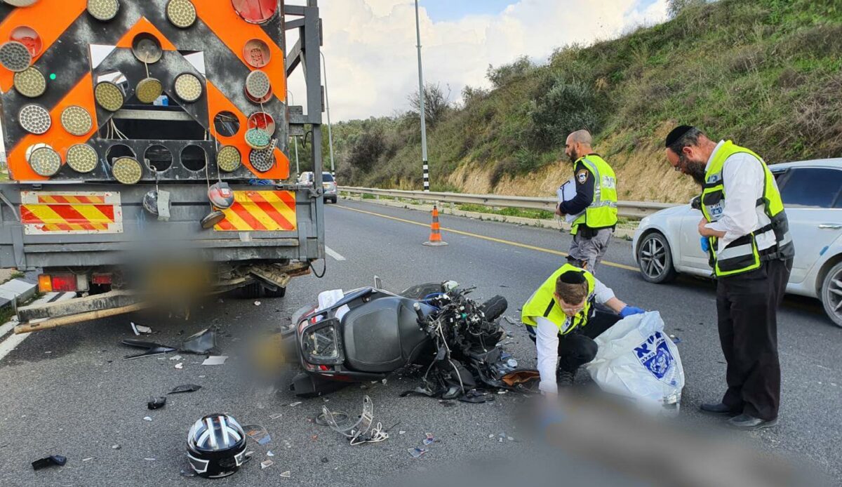 רוכב אופנוע בן 24 נהרג לפני זמן קצר בתאונה עם מעורבות משאית בכביש 443 בסמוך למחסום מכבים.