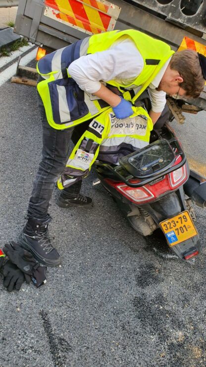 חובש הצלה חיים קלפהולץ, סיפר: "מדובר בתאונת דרכים בין אופנוע למשאית. כשהגעתי לזירה איתרתי רוכב אופנוע כבן 25 שוכב על הכביש מחוסר הכרה, ללא דופק ונשימה. הצעיר סבל מחבלה רב מערכתית, יחד עם פרמדיקים של מד"א ביצענו בדיקות רפואיות שלאחריהם נאלצו הפרמדיקים לקבוע את מותו במקום".