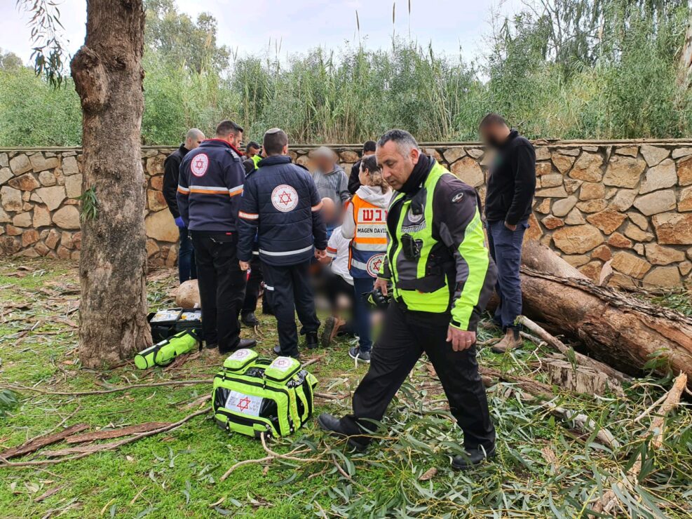 בשעה 08:34 התקבל דיווח על פועל שנפצע מעץ שקרס במהלך עבודת גיזום ברחוב ההדר בנהריה.