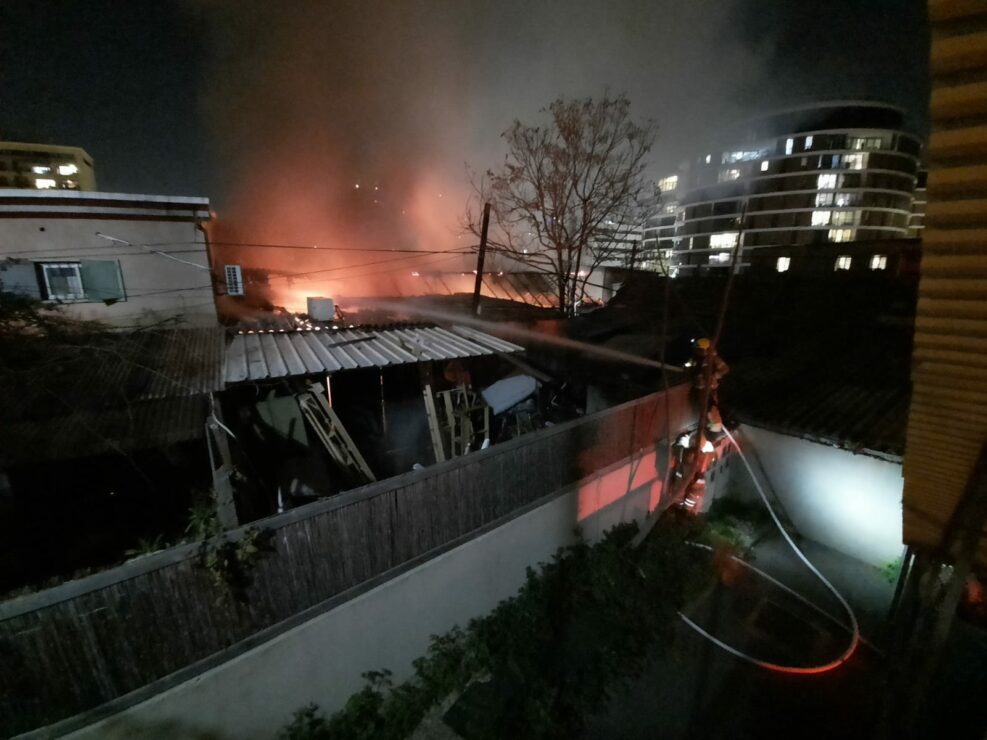 שבעה צוותי כיבוי בפיקודו של צחי אלאלוף פועלים ברגעים אלה לכיבוי שריפה בנגריה ברחוב פלורנטין פינת חצרים בתל אביב.