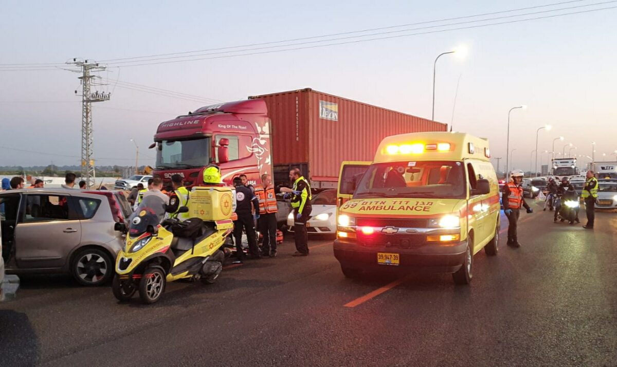 הולך רגל כבן 40 נפגע ממשאית לפני זמן קצר בכביש 4 בסמוך למחלף אשדוד לכיוון יבנה.