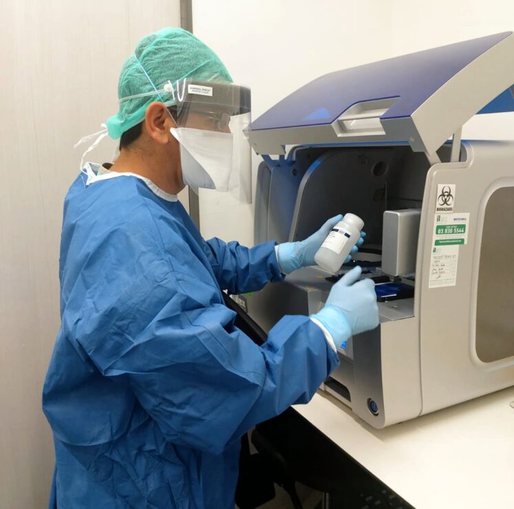 מספר רב של ערכות בדיקה מכניסים לתוך מכשיר שעושה את תהליך הדיאגנוזה ונותן תשובה חיובית/שלילית לקורונה.