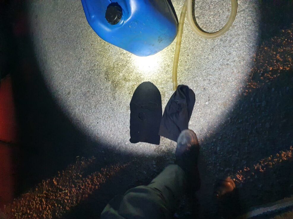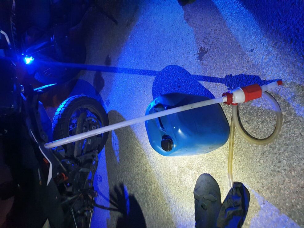 בחיפוש ברכב תפסו השוטרים גלון סולר מלא, משאבת דלק, 2 רעלות פנים ואמצעי לחיתוך גדרות.