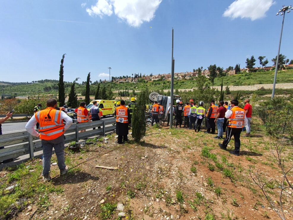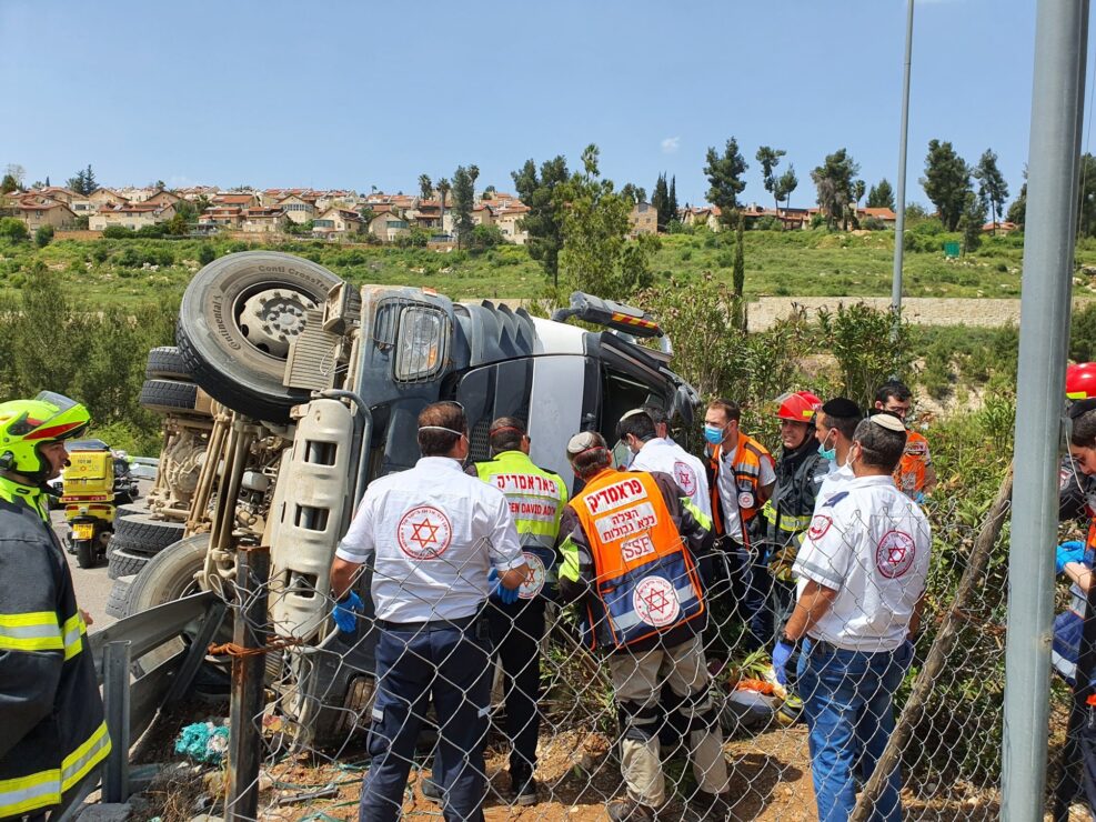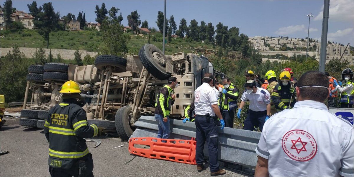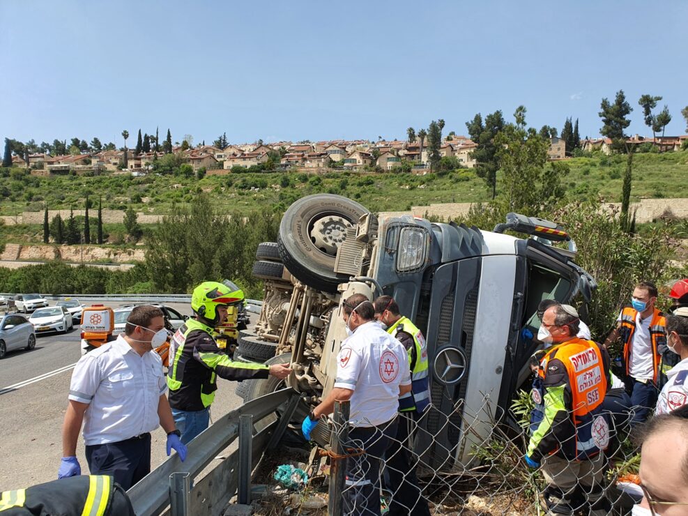 בשעה 13:12 התקבל דיווח על מערבל בטון שהתהפך, ביציאה מכביש 1 למחלף גולדה מאיר בירושלים.