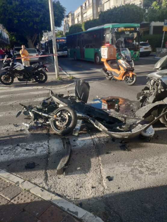 רוכב אופנוע כבן 20 נפצע בינוני בתאונת דרכים ברחוב בלפור בבת ים.