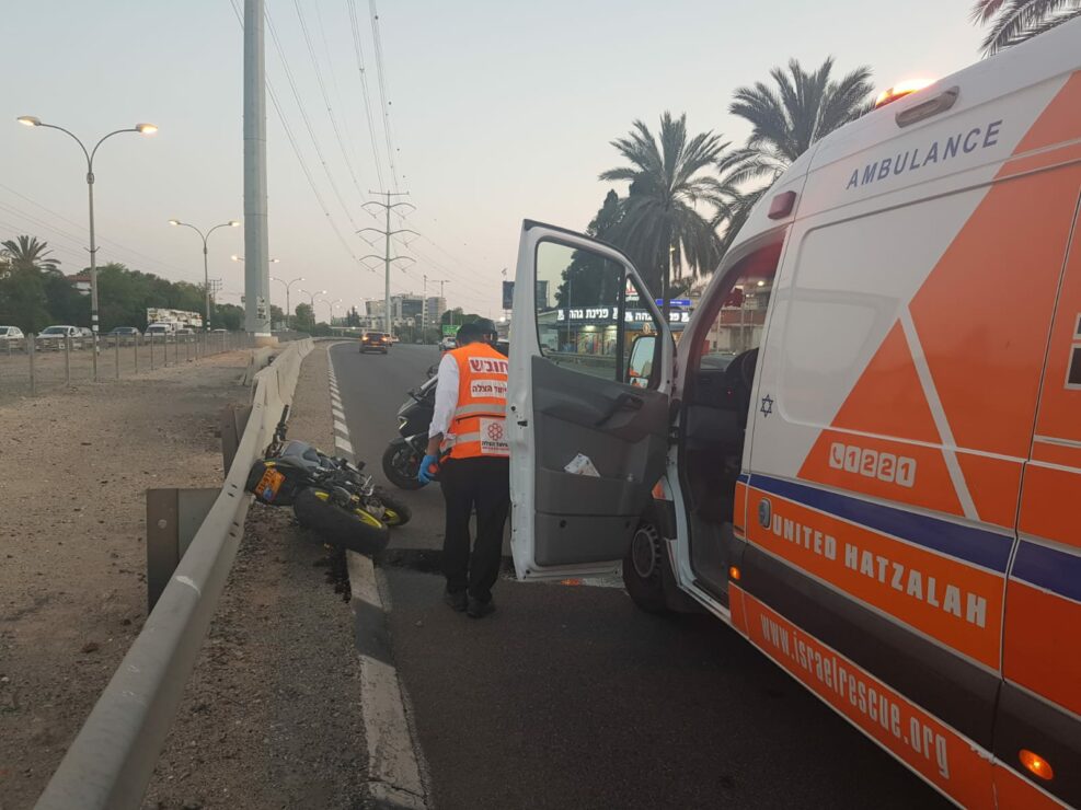 רוכב אופנוע כבן 25 נפצע בינוני בתאונה בכביש 4 בסמוך למחלף גבעת שמואל.