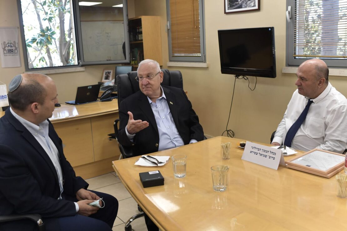 הנשיא שמע על צפי הפיתוח וההשלכות הכלכליות הרחבות שלו וביקש מהשר בנט שמלווה ומקדם את פיתוח הנוגדנים מתחילת הדרך, ומאנשי המכון לשים לנגד עיניהם את הפריפריה בישראל ובאופן ספציפי את האפשרות להקים מפעל חיסונים בירוחם העמלה בימים אלה על התשתית הרלוונטית לשם כך.