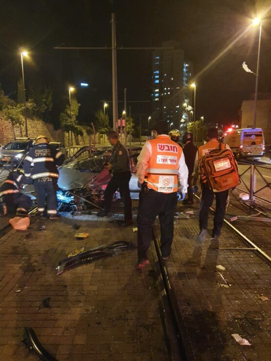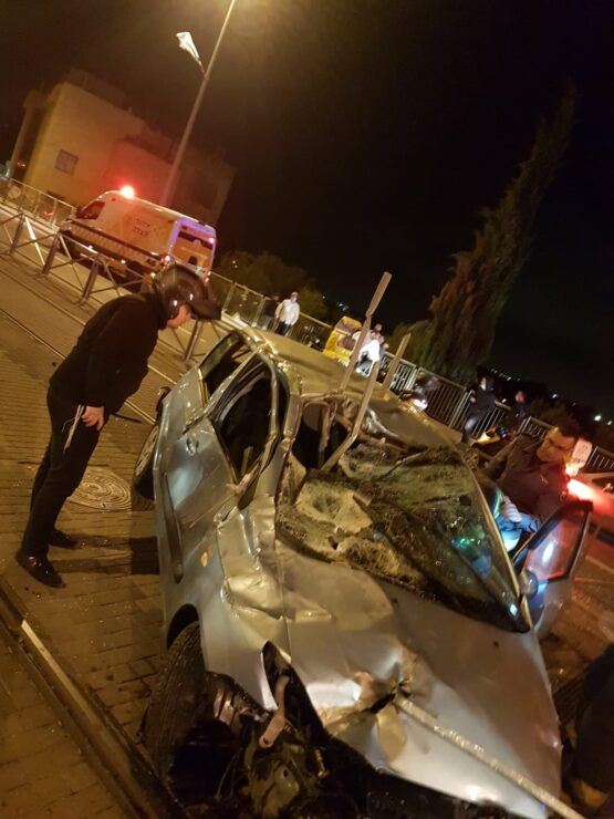 שלום קליין ובני לופס חובשים באיחוד הצלה סיפרו: "מדובר ברכב שהתנגש בגדר על פסי הרכבת הקלה. בסיוע רופא מתנדב באיחוד הצלה וצוות אמבולנס של איחוד הצלה הענקנו סיוע ראשוני לנהג הרכב שלדברי עוברי אורח התהפך מספר פעמים. צוותי כיבוי פעלו בזירה עקב אופי התאונה".