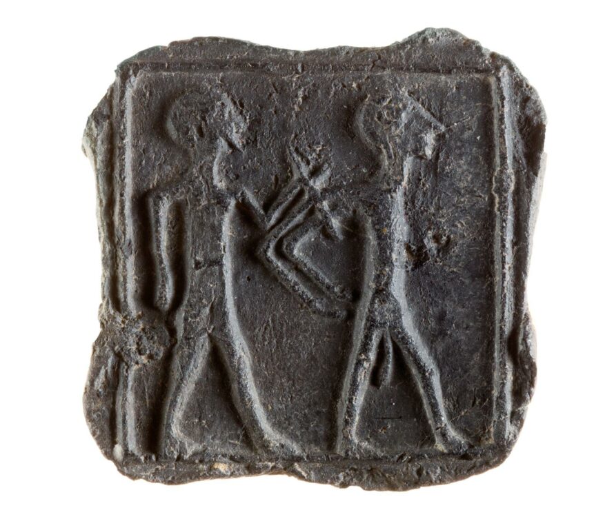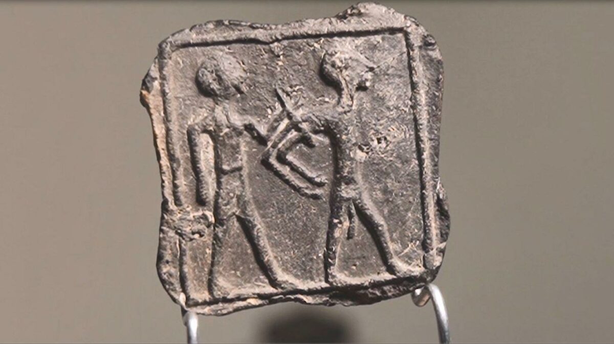 אימרי אליה בן ה-6 מקיבוץ נירים שבעוטף עזה, יצא בחודש מרץ האחרון עם הוריו לטייל באתר הארכיאולוגי תל ג'מה, שנמצא בסמוך לקיבוץ רעים, בנגב הצפוני. לפתע, צד את עינו חפץ מרובע קטן עשוי חרס, שגודלו 2.80 X 2.80 ס"מ. הילד הסקרן הרים את החפץ, ולהפתעתו ראה עליו שתי דמויות. הוריו של אימרי יצרו קשר עם רשות העתיקות ומסרו את הפריט לאוצרות המדינה.