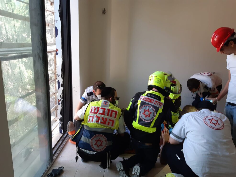 חובש הצלה בנצי הימל וחובש בכיר ליפא הירש, סיפרו: "כשהגענו למקום ראינו פועל בניין כבן 50 ששכב על הקרקע וסבל מחבלת ראש, לדברי עמיתיו הוא נפל מגובה של כ-7 מטר. הענקנו לו טיפול רפואי והוא פונה במצב בינוני ויציב לבית החולים".