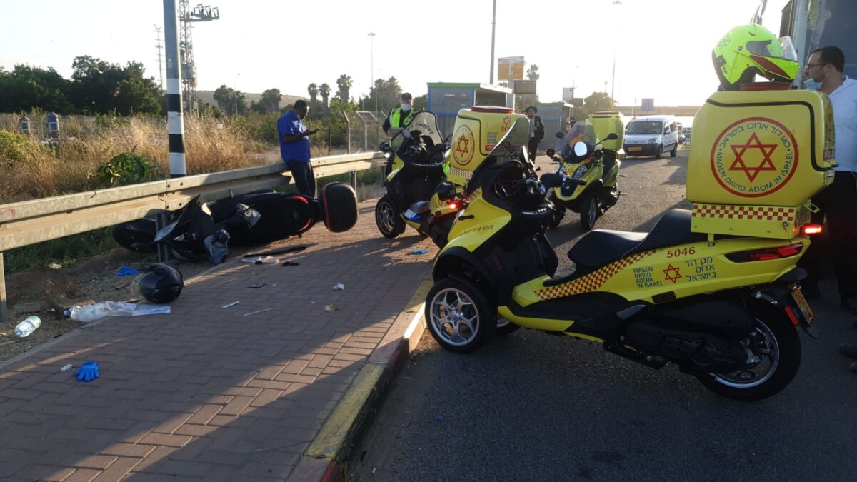 חובשי הצלה מנחם אינדיג ויעקב רפאלי סיפרו: "ליד מעקה הבטיחות מצאנו אופנוע מעוך ובסמוך אליו שכב רוכב אופנוע כבן 40, בהכרה, עם חבלות קשות בגפיים. יחד עם הפראמדיקים הענקנו לו טיפול רפואי והוא פונה בניידת טיפול נמרץ לבית החולים כשמצבו קשה".