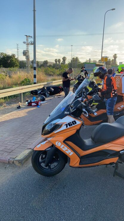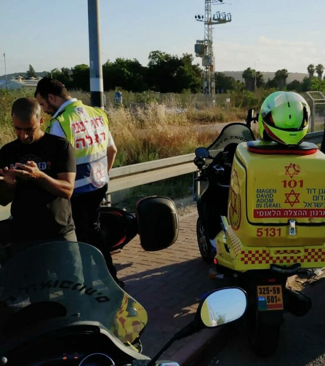 שלמה לוי ומאיר בטיטו חובשים ביחידת האופנועים של מד"א סיפרו: "כשהגענו למקום ראינו אופנוע מפורק בצידי הכביש ובסמוך אליו שכב רוכב האופנוע, גבר כבן 40, בהכרה מלאה,כשהוא סובל מחבלה קשה בגפיים. הענקנו לו טיפול רפואי מציל חיים ופינינו אותו לבית חולים כשמצבו מוגדר קשה".