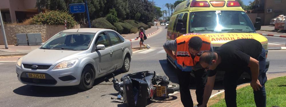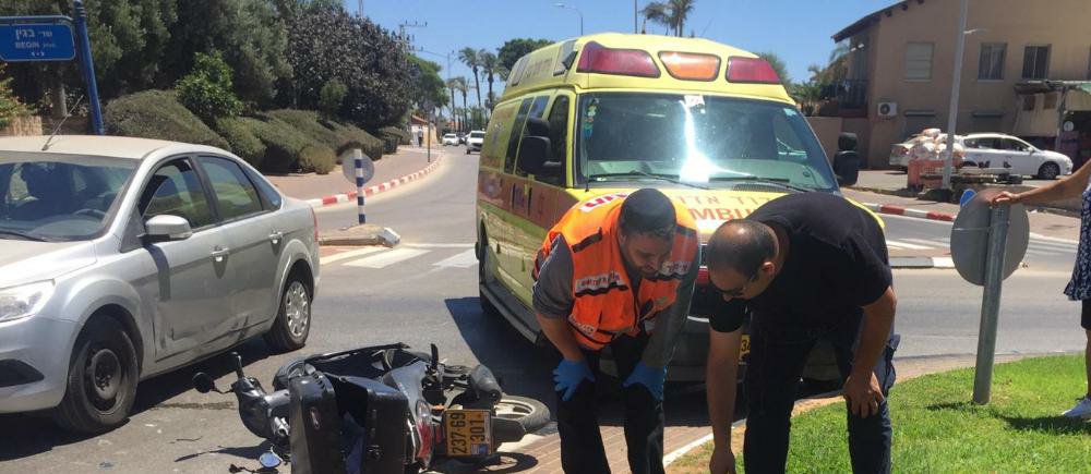 רוכב אופנוע כבן 20 נפצע בינוני בתאונה ברחוב מנחם בגין בחדרה.