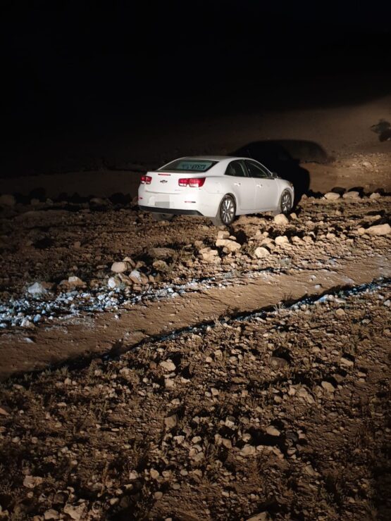 בהמשך תוך הסתייעות במערך האווירי של משטרת ישראל ויחידות מתנדבי משטרת ישראל מיחידת הג'יפים של תחנת ערד ויחידת החילוץ ערד אותר הרכב החשוד באירוע כאשר הוא נטוש בשטח מדברי באזור בית העלמין בעיר.