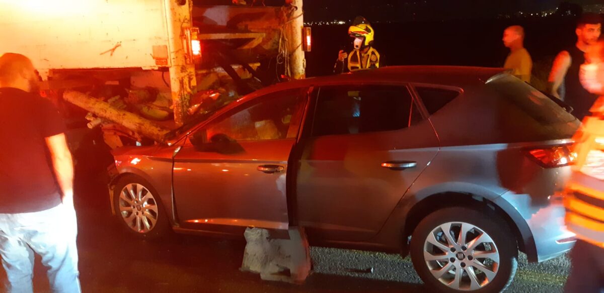 בשעה 20:36 התקבל דיווח על תאונה בין רכב פרטי ומשאית בכביש 79 ממחלף ביאליק למחלף אפק. חובשים ופראמדיקים של מד"א ואיחוד הצלה העניקו טיפול רפואי ופינו לבי"ח רמב"ם אישה בת 25 במצב בינוני עם חבלות בגפיים.