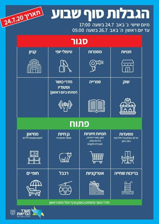 משרד הבריאות מפרסם את הגבלות סוף השבוע המעודכנות: חנויות, מספרות, טיפולי יופי, קניונים, שוק, ספרייה, חדרי כושר וסטודיו יהיו סגורים במהלך הסופ"ש.