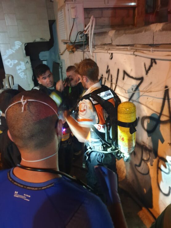 טום כרמי פראמדיק במד"א סיפר: "כשהגענו למקום ראינו בית מגורים בן 2 קומות, מהקומה השנייה יצא עשן סמיך. דיירים שיצאו מהבית סיפרו לנו שיש גבר לכוד בקומה שנשרפת, לאחר שהאש כובתה וניתן היה להכנס חילצו אלינו גבר כבן 70 עם כוויות בכל חלקי גופו, הוא היה ללא סימני חיים, ולא נותר לנו אלא לקבוע את מותו, בנוסף טיפלנו בגבר כבן 40 במצב בינוני לאחר ששאף עשן, ו- 4 נפגעים נוספים במצב קל."