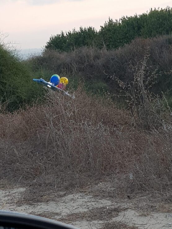 בנוסף, סמוך ליישוב בתחום המועצה האזורית חוף אשקלון נצפה בלון אליו מחובר פריט מעורר חשד. שוטרים וחבלן משטרה הגיעו למקום הדיווח על מנת לבצע טיפול מקצועי בחפץ החשוד, במהלך הגעת השוטרים למקום התפוצץ הפריט המחובר לבלון, לא נגרם נזק ואין נפגעים.