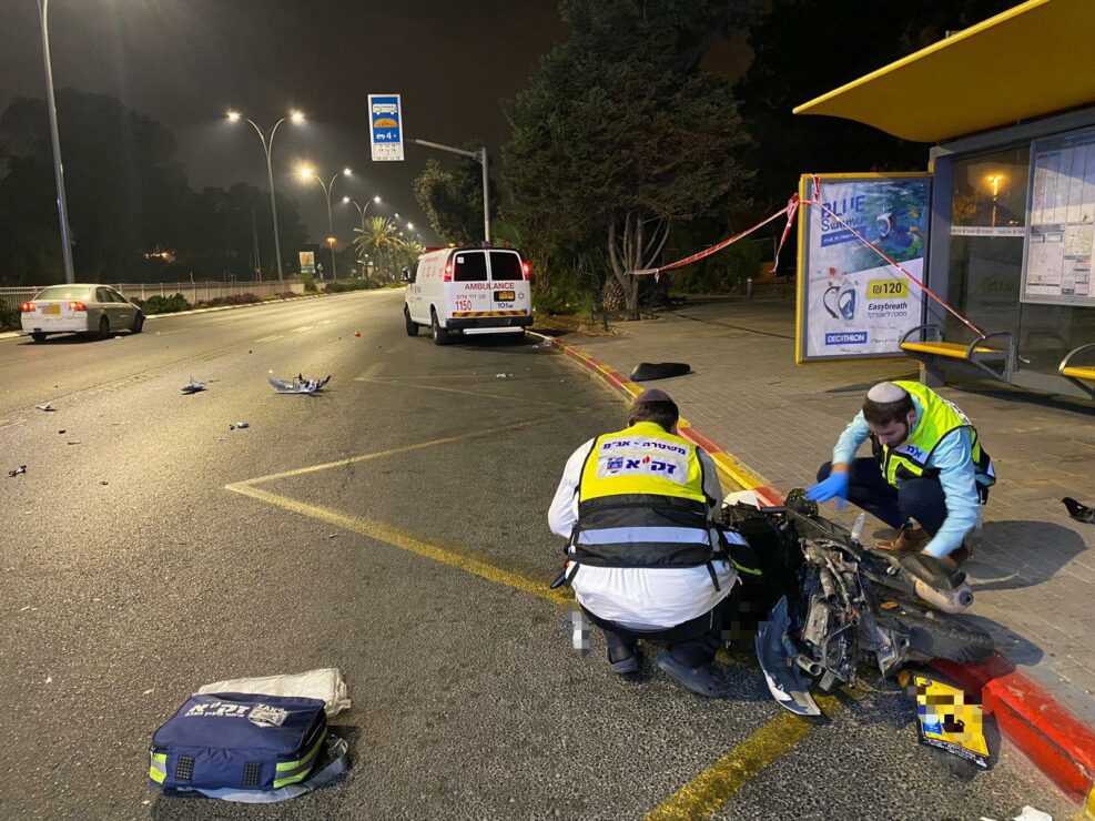 בשעה 01:53 התקבל דיווח על רוכב אופנוע שנפגע מרכב, ברחוב משה דיין בראשל"צ. חובשים ופראמדיקים של מד"א העניקו טיפול רפואי ופינו לבי"ח שיבא בתל השומר, צעיר כבן 21 במצב אנוש תוך פעולות החייאה, לצערינו בבית חולים נקבע מותו.