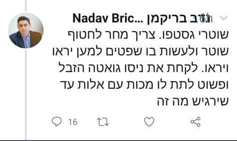 לפני מספר שבועות פורסמה הודעה ברשת חברתית, שבה נכתב, בין היתר, שצריך להתחיל לפגוע בשוטרים.