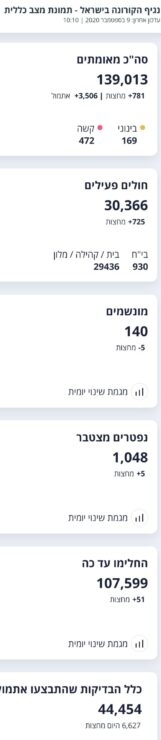 משרד הבריאות מעדכן כי 3,506 חולים מאומתים חדשים אובחנו אתמול (8.9), מתוך 44,456 תוצאות בדיקות שהתקבלו.