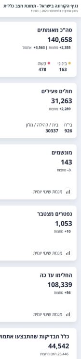 משרד הבריאות מעדכן כי 3,563 חולים מאומתים חדשים אובחנו אתמול (8.9), מתוך 44,542 תוצאות בדיקות שהתקבלו.