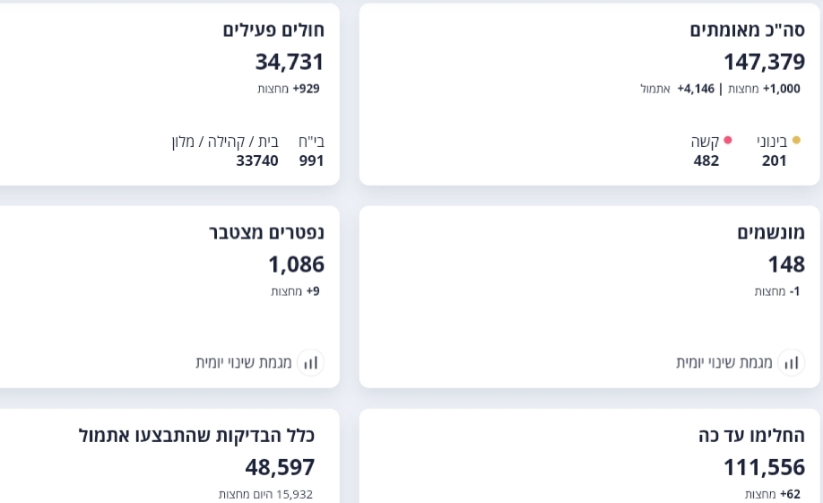 147,379 מאומתים מפרוץ המגפה. (1000 מהבוקר)