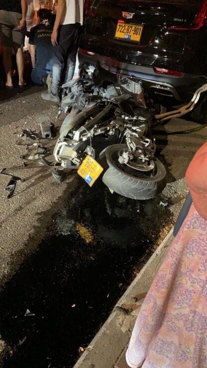 בשעה 19:58 התקבל דיווח על רוכב אופנוע שהתנגש ברכב חונה, ברחוב שקד בטבריה. חובשים ופראמדיקים של מד״א העניקו טיפול רפואי ופינו לביה״ח פוריה צעיר כבן 22 במצב בינוני עם חבלות בגב ובגפיים.