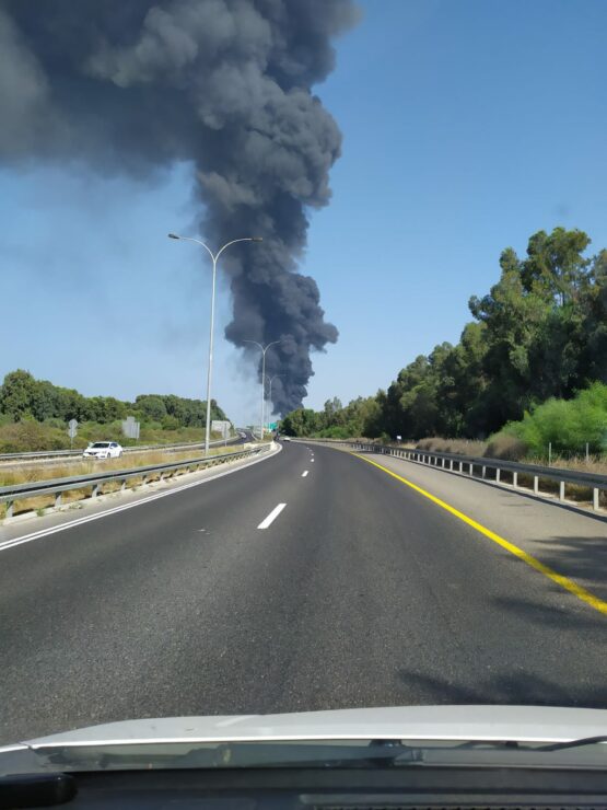 שריפה בהיקף נרחב פרצה בחצר מפעל מילואות אז״ת נעמן בעיר עכו.