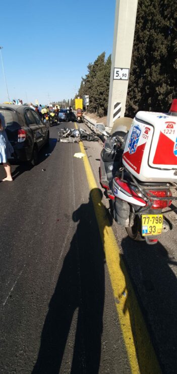 הלל חמואי חובש ועמית סיני נהג אמבולנס של איחוד הצלה סיפרו: "מדובר בתאונה בין רכב פרטי לאופנוע כבד, הענקנו סיוע לרוכב האופנוע כבן 40 שנפצע באורח בינוני ופונה על ידי ניידת טיפול נמרץ, כמו כן הענקנו סיוע רפואי לשני נפגעים נוספים באורח קל. אחת מהנפגעים פונתה על ידי אמבולנס איחוד הצלה כאשר מצבה מוגדר קל כאמור."