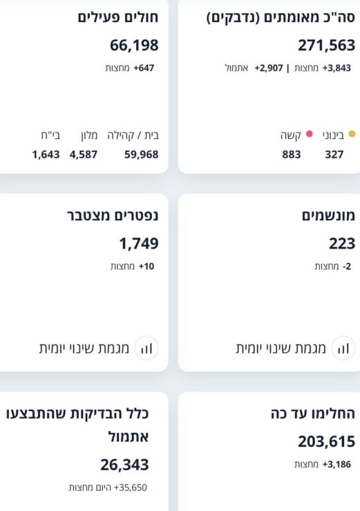 משרד הבריאות מעדכן על 2,907 מאומתים חדשים אתמול (4.10), מתוך 26,343 תוצאות בדיקות שהתקבלו.