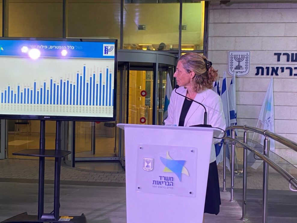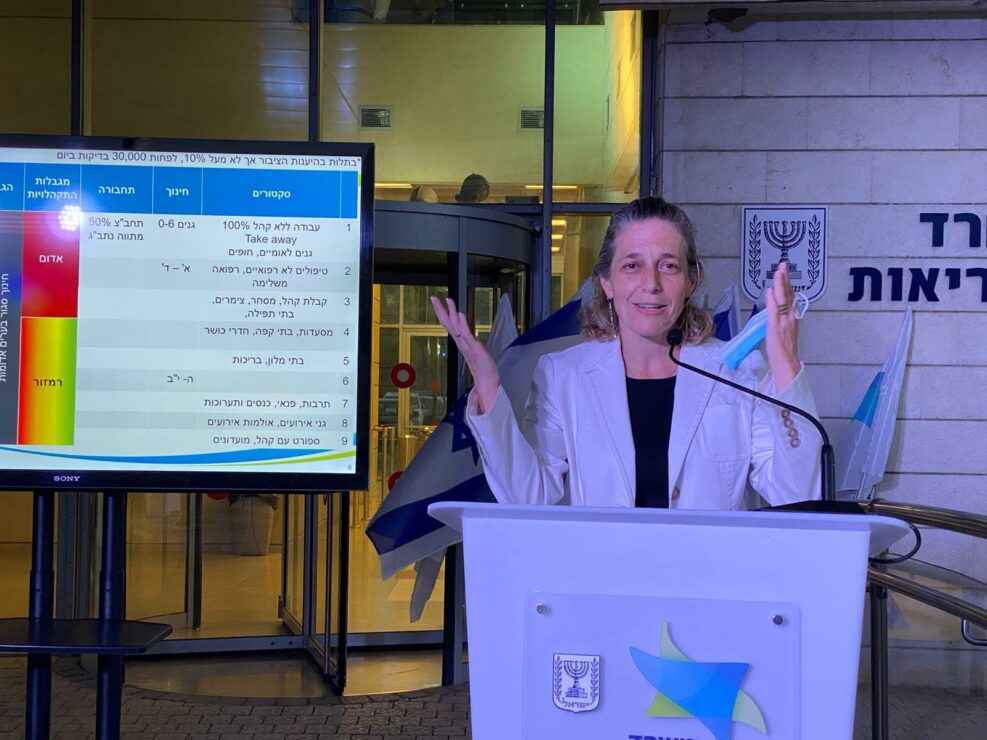 ראש שירותי בריאות הציבור במשרד הבריאות, ד״ר שרון אלרעי-פרייס, הציגה במהלך התדרוך לעיתונאים, את המלצת משרד הבריאות לשלבי היציאה מהסגר: