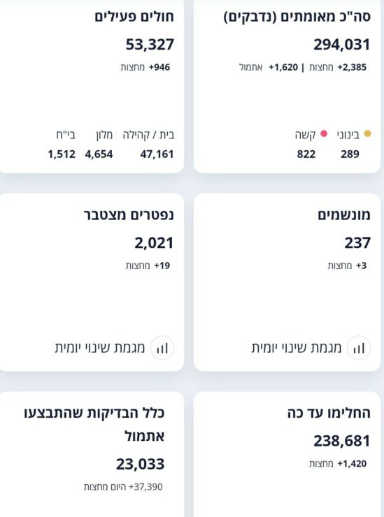 ▪️ מספר נדבקים בקורונה בישראל עד היום: 294,031.